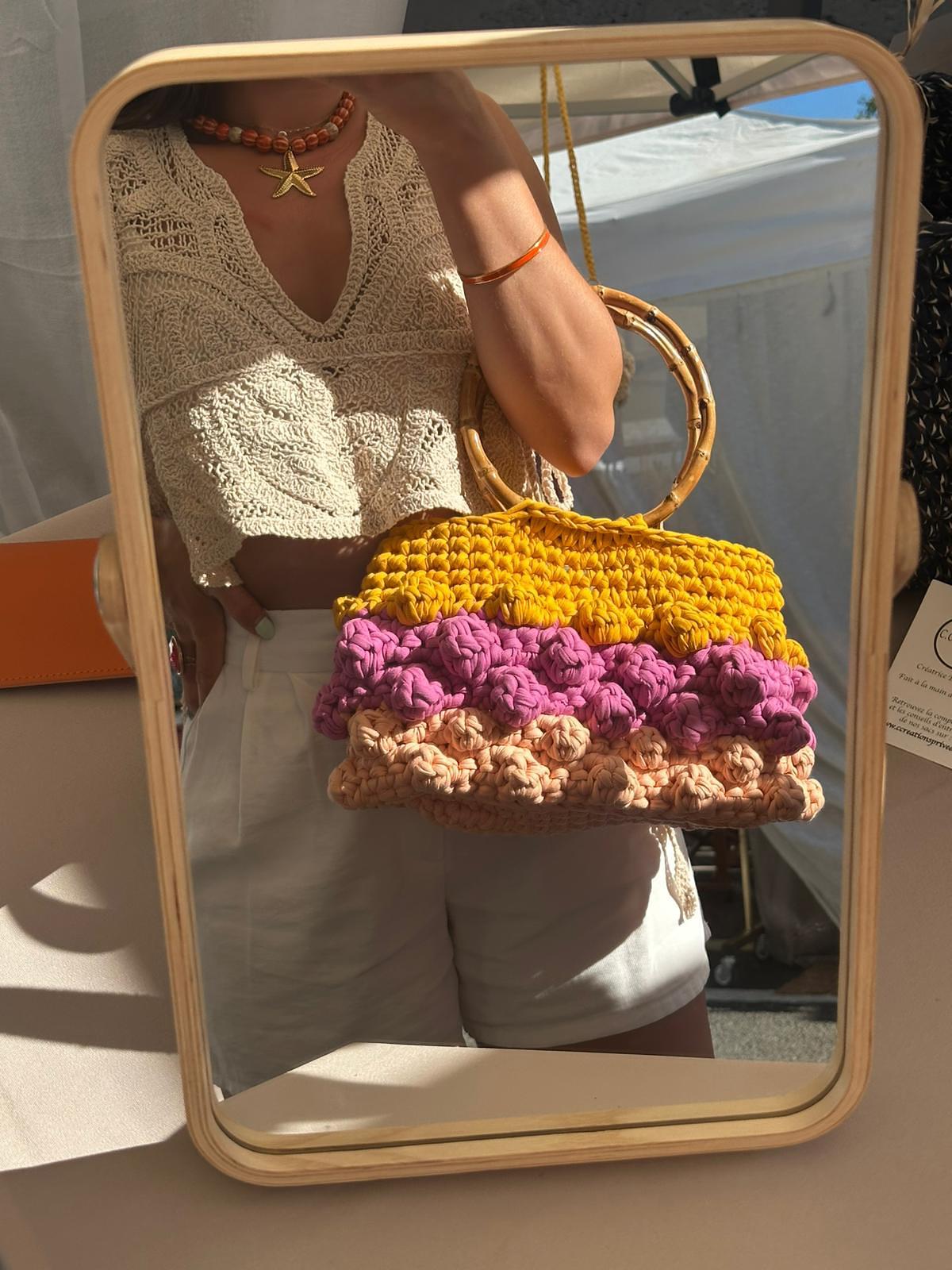 Lavable à la main, ne pas porter humide, ne pas sécher en machine et ne pas mettre en contact avec les corps gras.